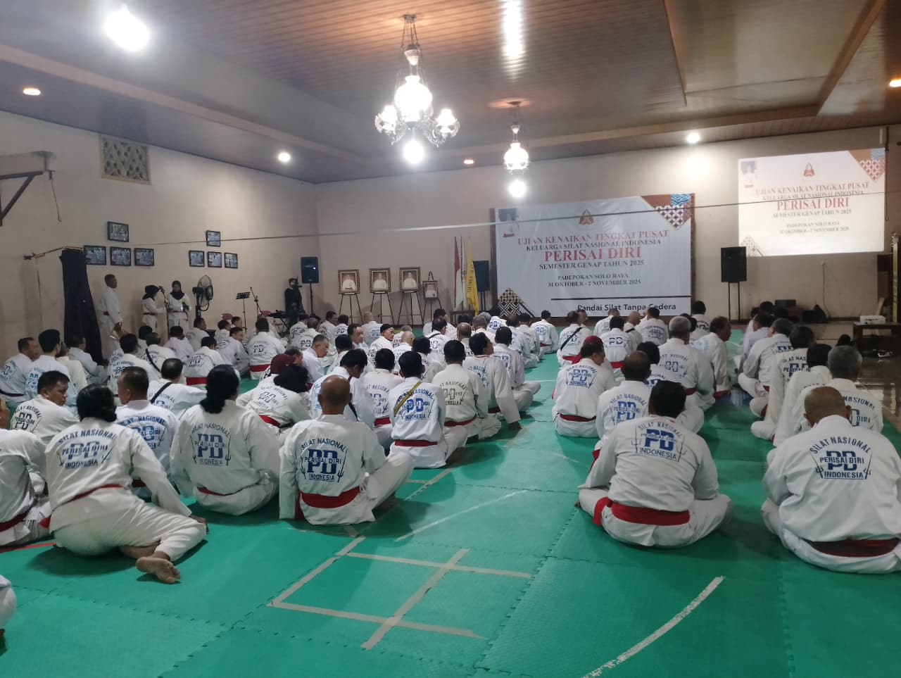 SOLO RAYA – Kelatnas Indonesia Perisai Diri (PD) menggelar Ujian Kenaikan Tingkat (UKT) Nasional 2025 di Padepokan PD Solo Raya. Kegiatan yang diikuti 116 peserta dari berbagai provinsi di Indonesia ini berlangsung selama tiga hari, mulai 31 Oktober hingga 2 November 2025.