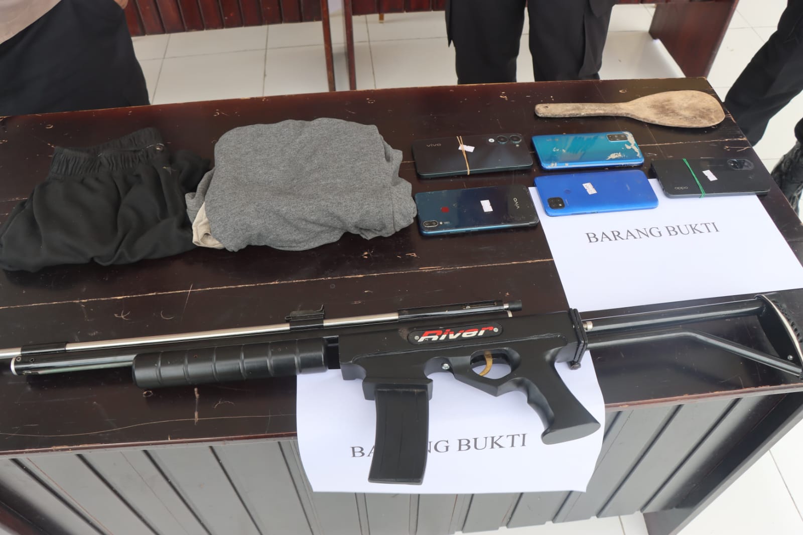Barang Bukti: Senapan Angin dan Ponsel Berbagai Merek
