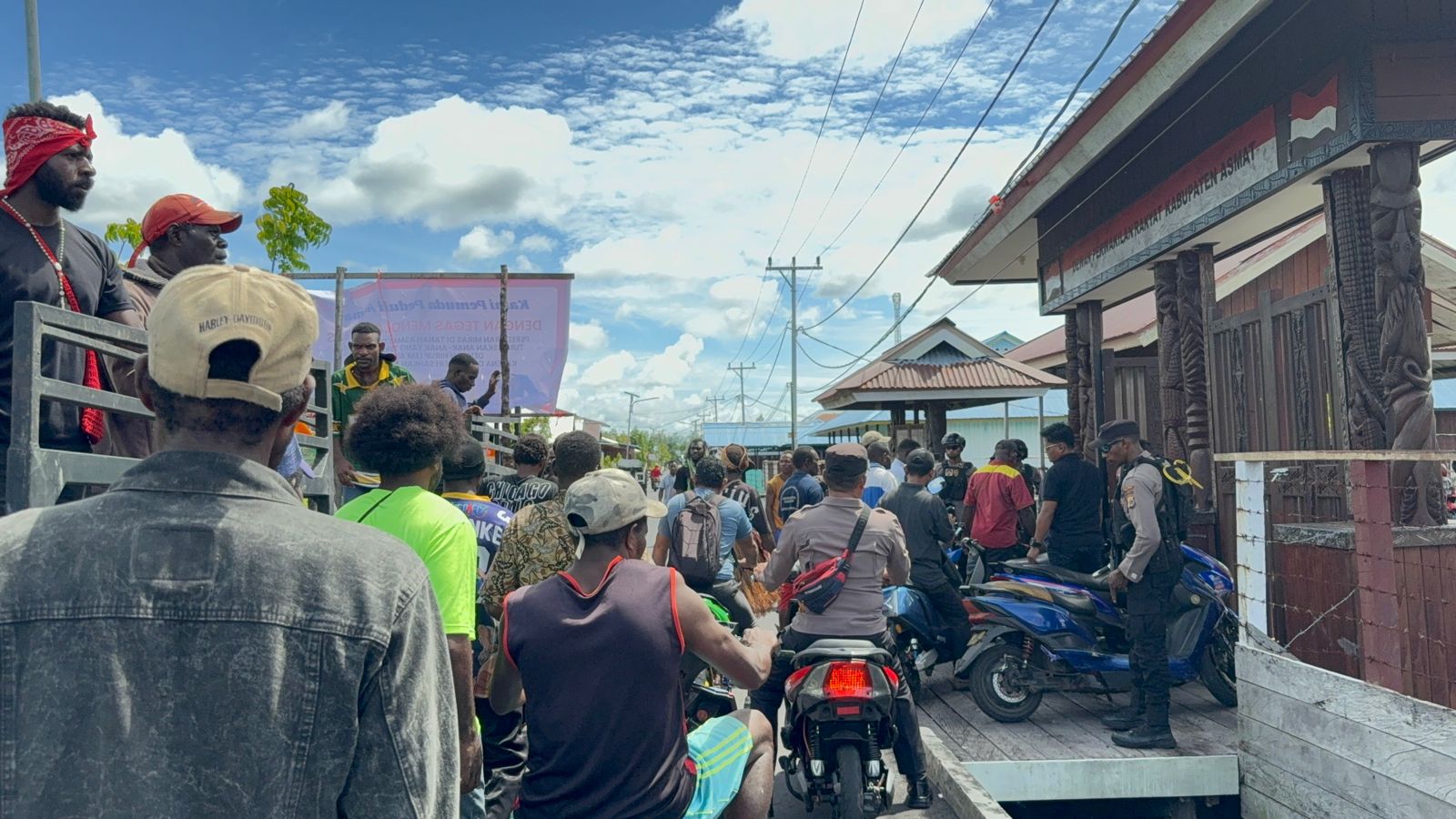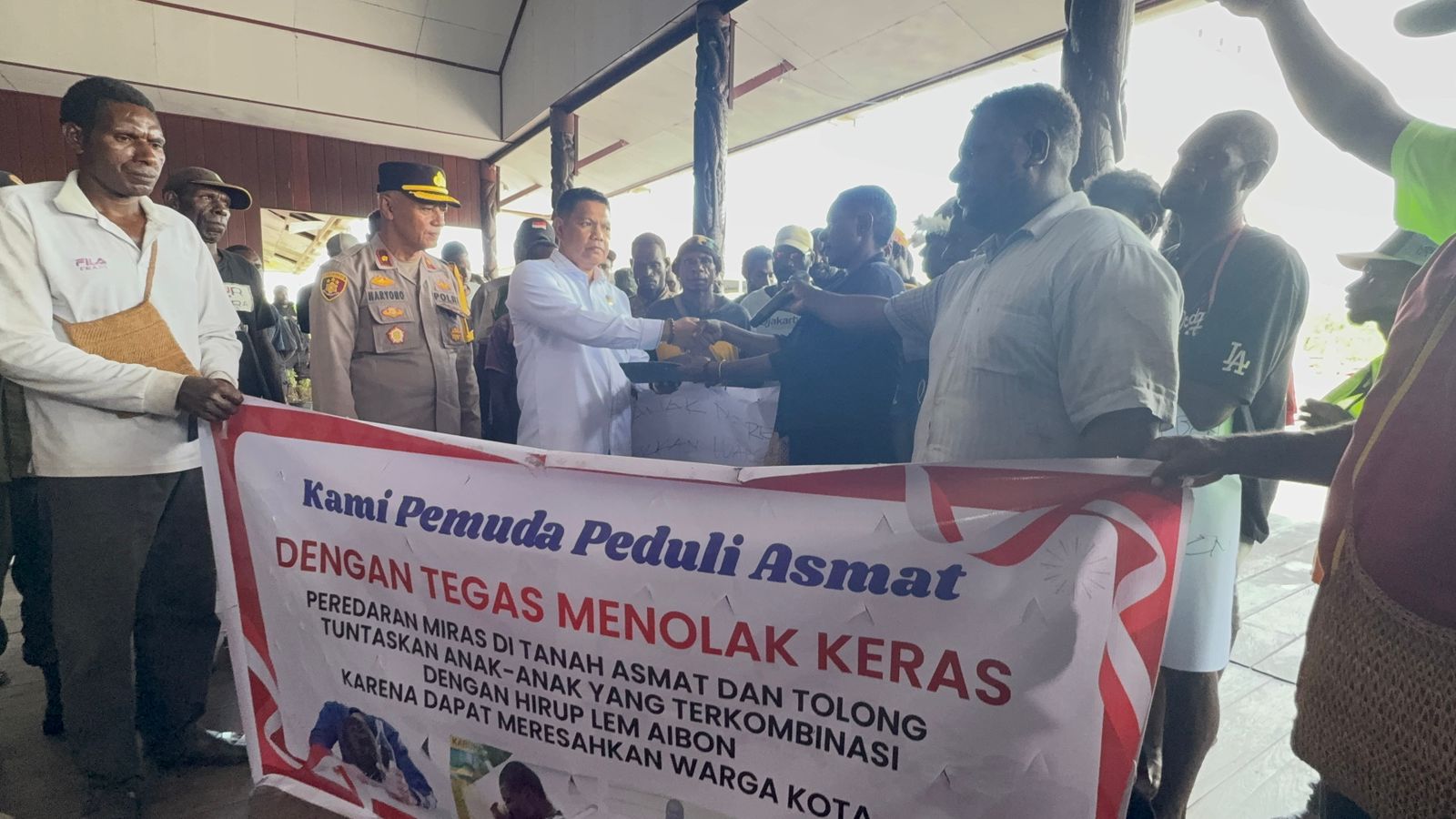 “Penjualan miras harus dihentikan. Begitu juga peredaran lem aibon yang tidak terkontrol. Saya tegaskan, miras dan lem aibon adalah ancaman nyata yang sedang menghancurkan masa depan generasi muda Asmat,” ujar Kompol Haryono di hadapan peserta aksi.