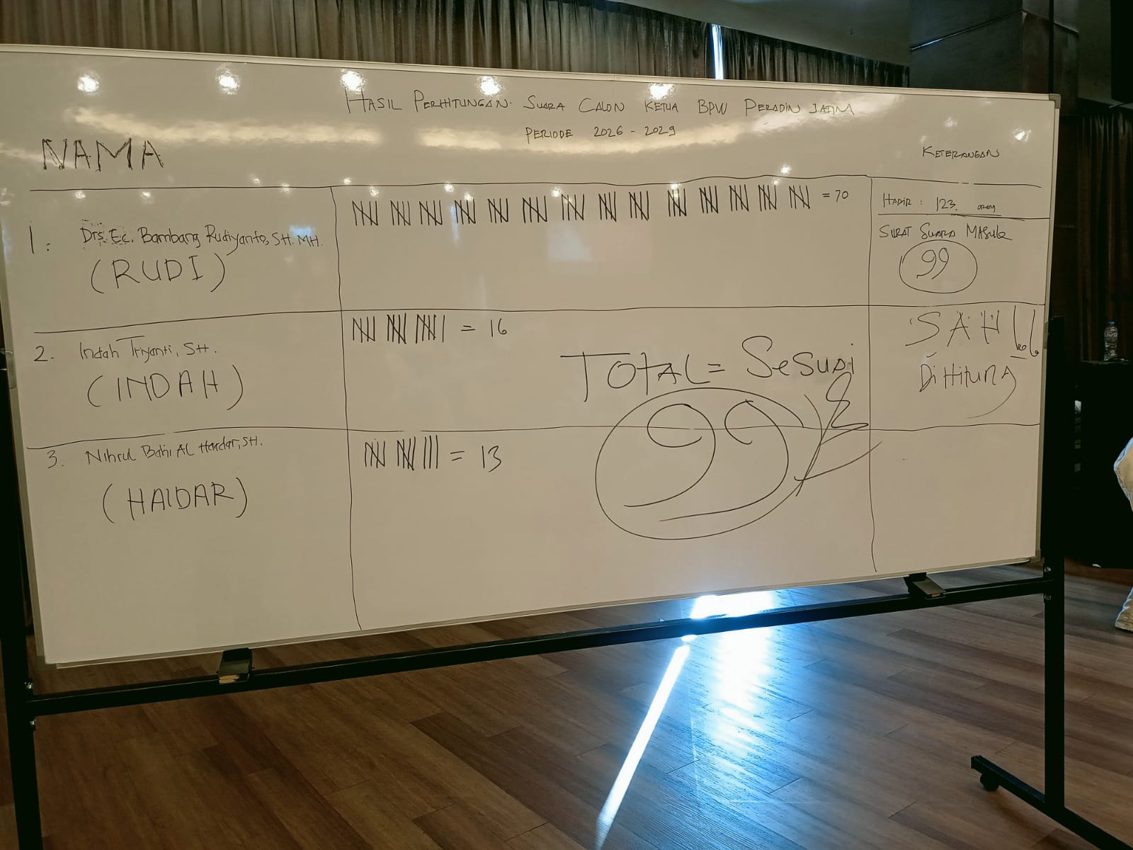 Pemilihan Ketua BPW PERADIN Jatim periode 2026–2029 diikuti oleh tiga kandidat potensial. Berdasarkan hasil pemungutan suara dari para pemilik mandat yang hadir, Bambang Rudiyanto selaku petahana (incumbent) meraih kemenangan telak. Berikut rincian perolehan suaranya: