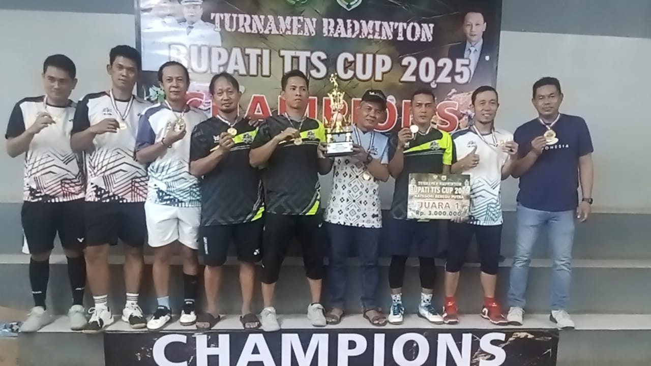 SO’E, TTS – Tim bulutangkis PB Cendana A berhasil menjuarai turnamen Piala Bupati TTS 2025 setelah menang telak dengan skor 2-0 atas PB Lintas A dalam laga final ganda putra yang berlangsung di Lapangan Perdana Sport Point So’e, Kabupaten Timor Tengah Selatan (TTS), Jumat (3/10/2025).