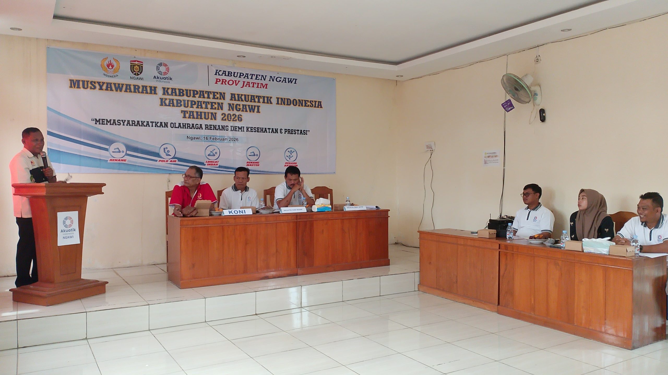 Acara Muskab ini dibuka langsung oleh perwakilan Pengprov Akuatik Indonesia Jawa Timur, Subroto, serta dihadiri jajaran pengurus KONI Kabupaten Ngawi. Sekretaris Umum KONI Ngawi, Puguh Kadaryono (Pakde Puguh), menyampaikan harapan besar agar cabang akuatik menjadi lumbung medali bagi Ngawi di masa depan.