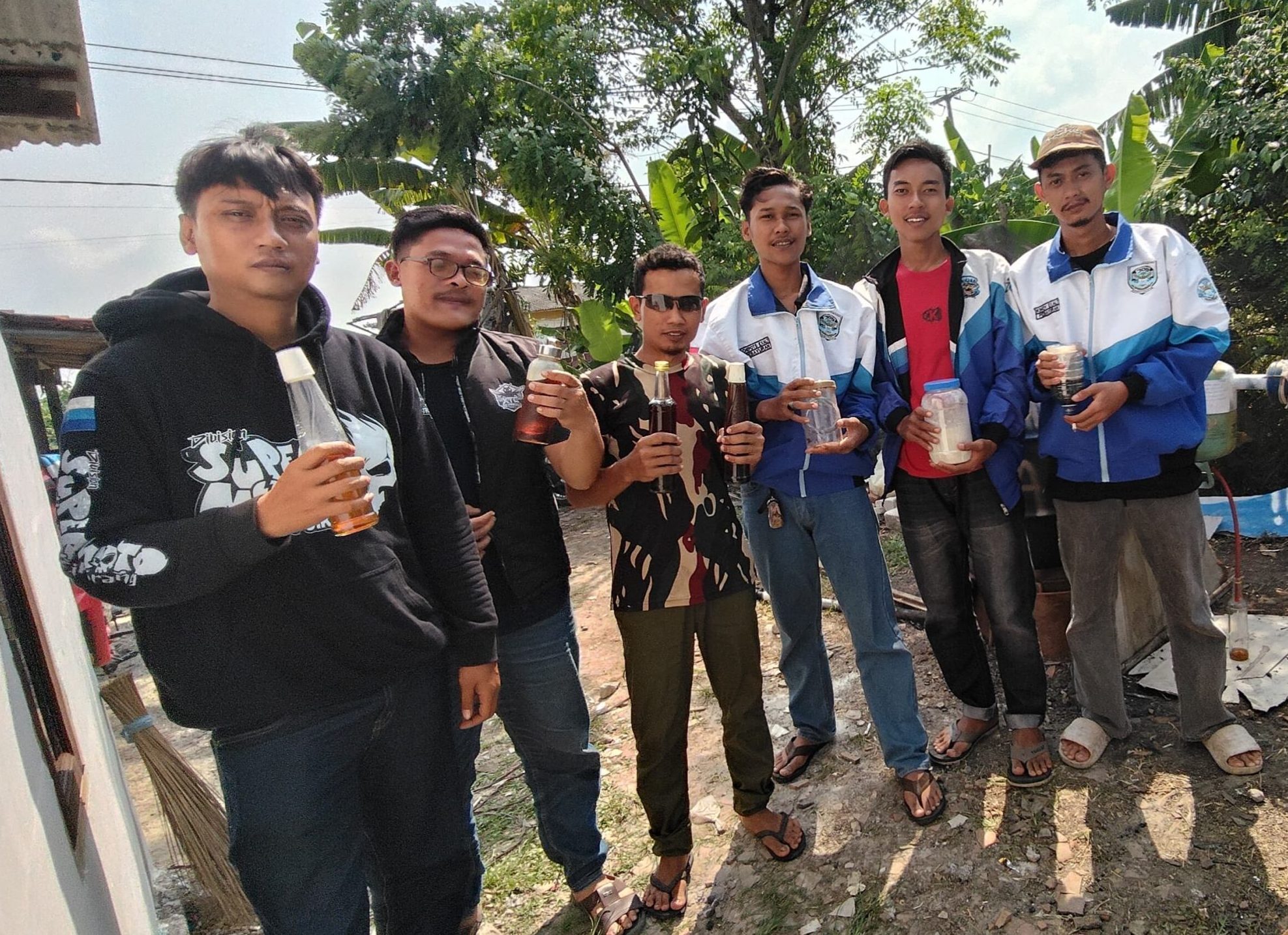 “Kami berikan secara cuma-cuma kepada petani di sekitar sini. Untuk bensin dan solar lainnya, kami gunakan sendiri untuk mendukung mobilitas anak-anak lokal yang keliling memungut sampah,” tambah Amir.