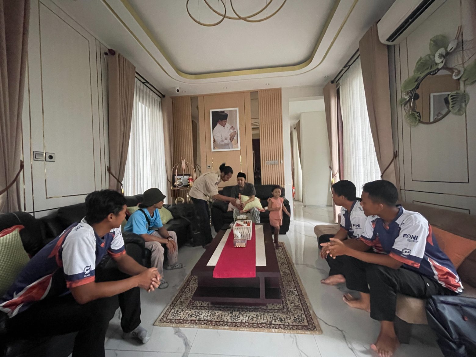Menjelang keberangkatan, jajaran pengurus FONI Jombang bersama para atlet melakukan sowan dan pamit kepada anggota DPRD Kabupaten Jombang, Achmad Fachruddin, S.M., yang juga menjabat sebagai Ketua Umum Gekrafs Jombang.