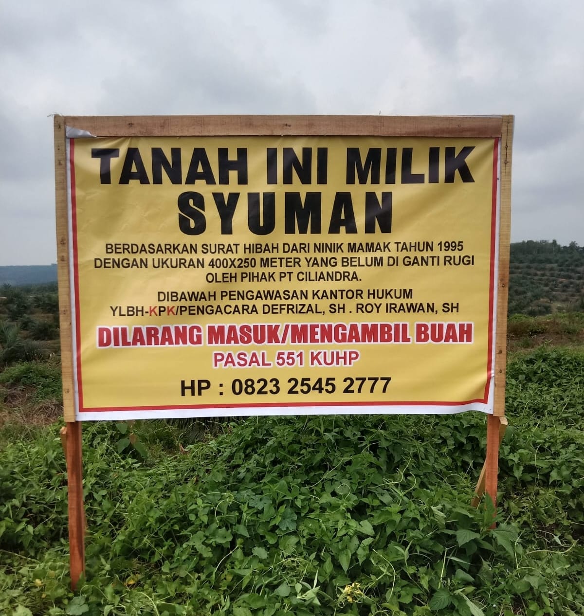 Ketua Yayasan Bantuan Hukum Kampar Pencari Keadilan (YLBH KPK), Defrizal, SH, yang turut menangani perkara ini, menegaskan bahwa tindakan perusahaan merupakan pelanggaran hak masyarakat hukum adat dan ketentuan agraria.