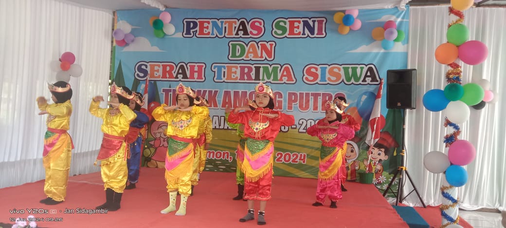 Pentas seni ini diselenggarakan dalam rangka pelepasan siswa-siswi TK PKK Among Putro yang akan meninggalkan tempat mereka bermain dan belajar selama 2 tahun dan akan melanjutkan pendidikannya ke tingkat Sekolah Dasar sesuai pilihan masing-masing.