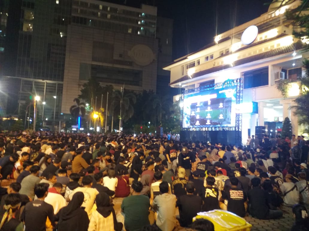 Semangat warga Kota Medan masih tetap tidak berhenti untuk mendukung Timnas U23, terbukti dengan kondisi halaman kantor Walikota Medan sangat padat diramaikan oleh ribuan orang yang menonton bersama.
