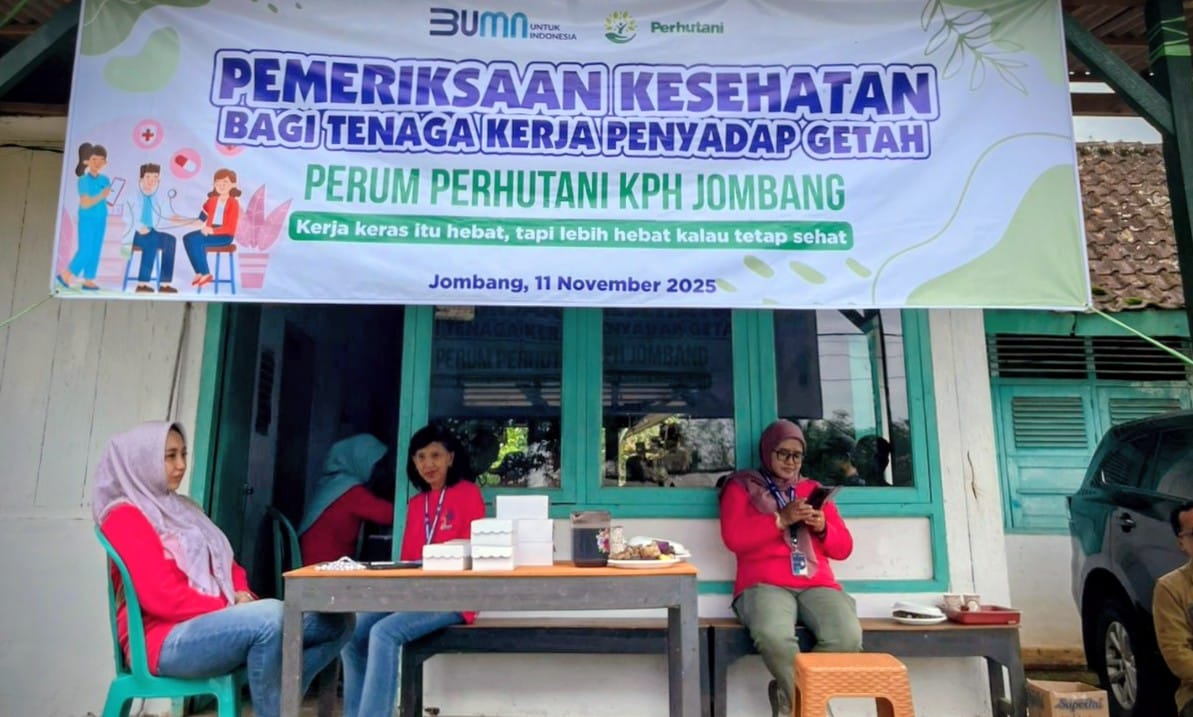 JOMBANG – Perum Perhutani Kesatuan Pemangkuan Hutan (KPH) Jombang bekerja sama dengan Rumah Sakit Umum Daerah (RSUD) Kabupaten Jombang menyelenggarakan kegiatan pemeriksaan kesehatan gratis. Kegiatan ini ditujukan bagi tenaga kerja sadap getah pinus dan masyarakat sekitar hutan, bertempat di Rumah Dinas Resort Pemangkuan Hutan (RPH) Carang Wulung, Bagian Kesatuan Pemangkuan Hutan (BKPH) Jabung, Desa Pangklungan, Kecamatan Wonosalam, Kabupaten Jombang, pada Selasa (11/11/2025).