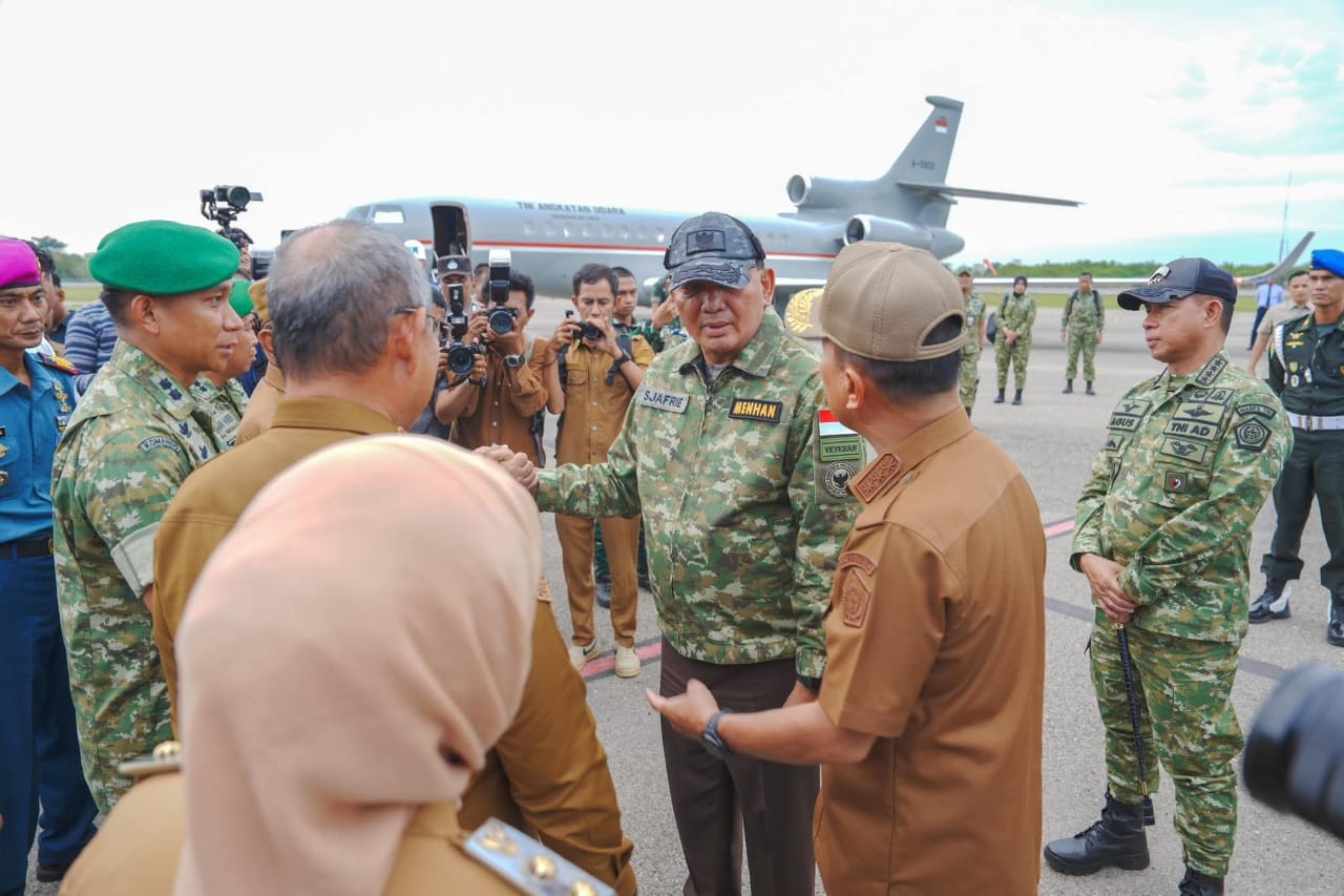 Kedatangan Menhan Sjafrie disambut langsung oleh Gubernur Sulawesi Tenggara Mayjen TNI (Purn) Andi Sumangerukka, Wali Kota Baubau Yusran Fahim, Bupati Buton Selatan Muh. Adios, serta jajaran Forkopimda setempat.