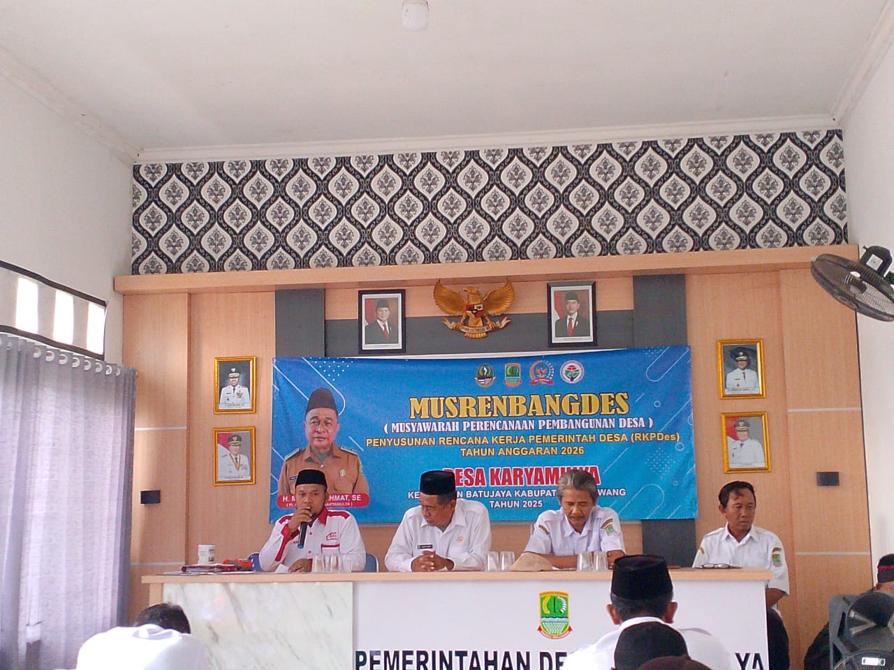Kades Karyamulya, Pjs. H. Mamat Rahmat, S.E., dalam rapat tersebut menekankan pentingnya peningkatan kinerja pelayanan desa. Beliau juga berkomitmen untuk terus memantau rencana dan pelaksanaan pembangunan desa tahun 2026, menegaskan bahwa keterlibatan semua pihak sangat dibutuhkan untuk mewujudkan pembangunan yang tepat sasaran dan berkualitas.