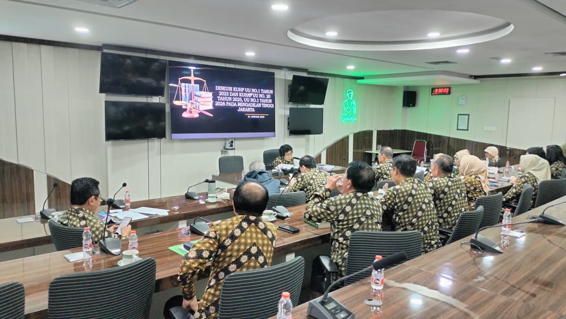 JAKARTA — Pengadilan Tinggi (PT) Jakarta bergerak cepat melakukan sinkronisasi pemahaman terkait regulasi hukum terbaru. Bertempat di Ruang Pusat Kendali, Wakil Ketua Pengadilan Tinggi Jakarta, Albertina Ho, memimpin rapat koordinasi krusial mengenai pembahasan implementasi KUHP dan KUHAP, Jumat (23/01/2026).