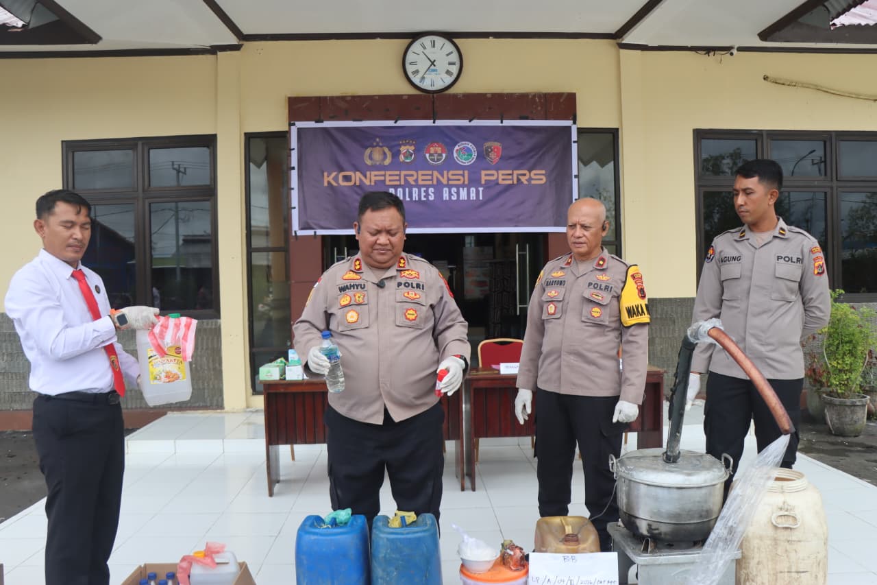 ASMAT — Satuan Reserse Narkoba (Sat Resnarkoba) Polres Asmat berhasil mengungkap praktik produksi minuman keras (miras) lokal ilegal jenis “Sopi Kaki Anjing” di sebuah hunian warga. Lokasi produksi yang terletak di Jalan BA, Kampung Aswetsy, Distrik Agats, digerebek petugas setelah terindikasi menjadi pusat penyulingan miras yang meresahkan masyarakat.