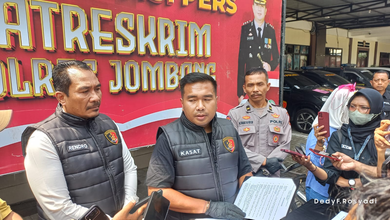 Kapolres Jombang, AKBP Ardi Kurniawan, S.H., S.I.K., CPHR, melalui Kasatreskrim, memaparkan kronologi pengungkapan kasus tersebut dalam konferensi pers yang digelar di halaman Kantor Satreskrim Polres Jombang, Selasa (21/04/2026).
