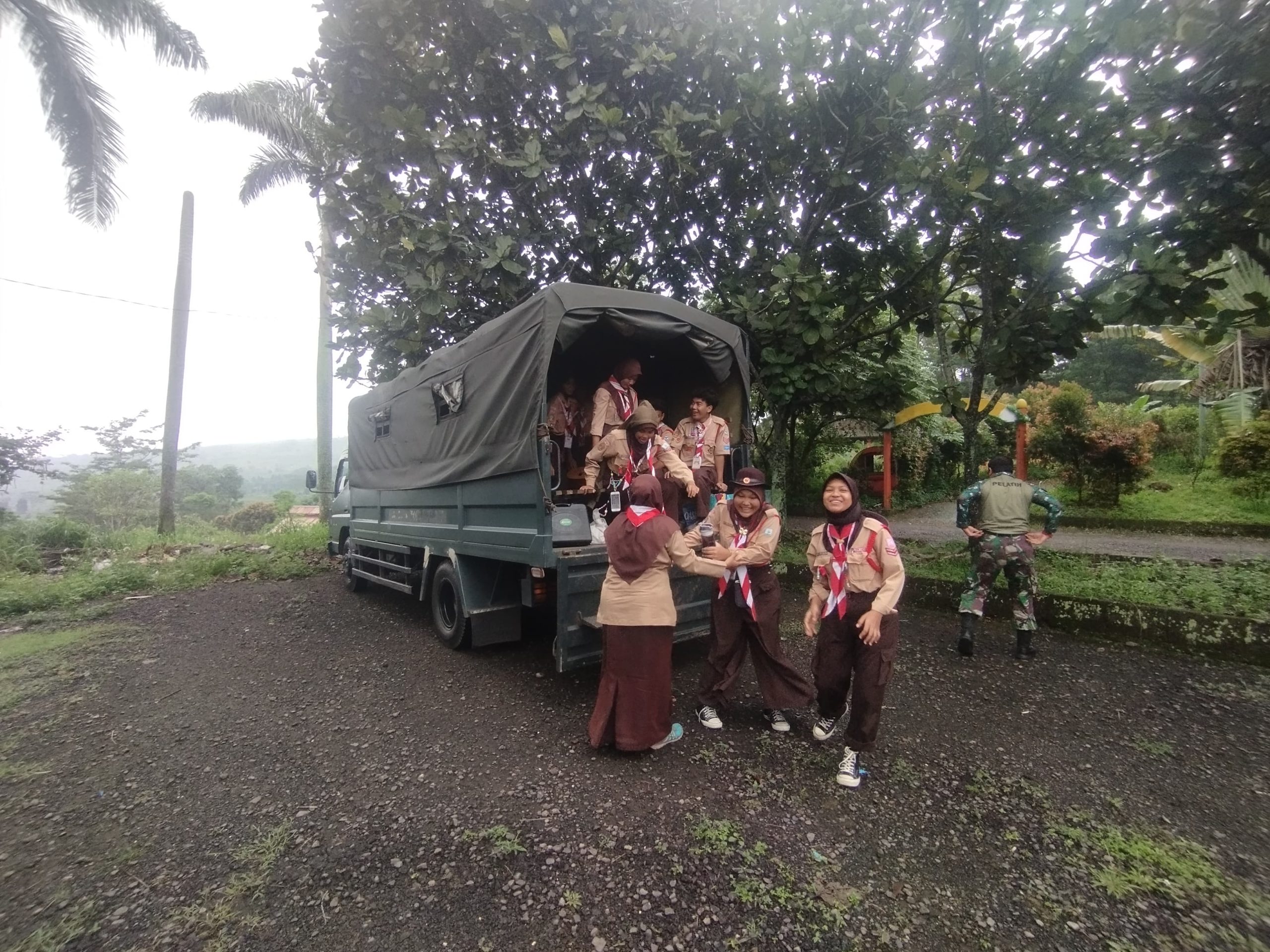 Sebanyak 25 peserta Pramuka Reguler secara simbolis dilepas menuju lokasi kegiatan pada pukul 07.30 WIB dengan pengalungan ID card oleh kepala sekolah.