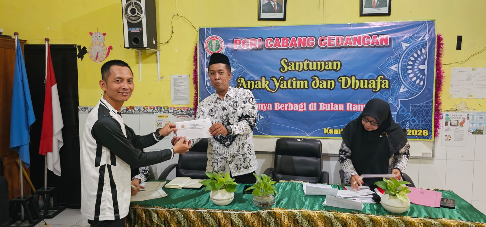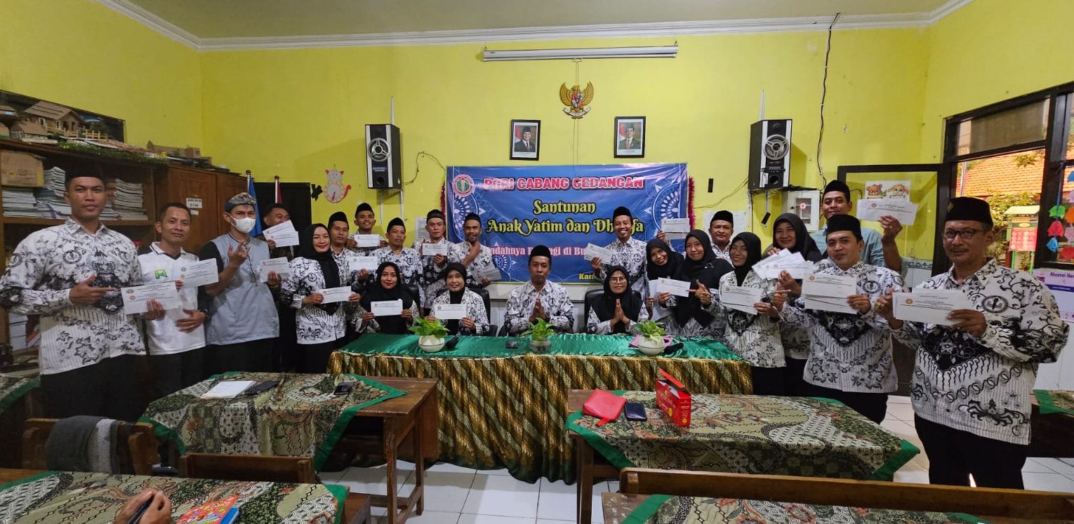 Ketua PGRI Kecamatan Gedangan, Syamsul Huda, S.Pd., memberikan apresiasi setinggi-tingginya kepada seluruh pengurus dan anggota yang telah menyisihkan sebagian rezekinya.