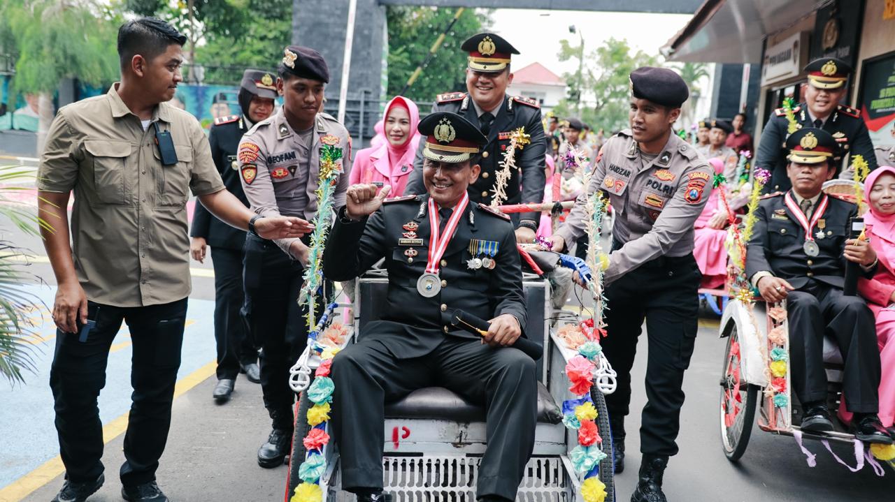 “Polri berasal dari masyarakat, bekerja untuk masyarakat, dan nanti pun akan kembali ke masyarakat. Naik becak ini adalah simbol kesederhanaan yang tetap kami junjung, meski sudah tidak lagi bertugas,” ungkapnya.